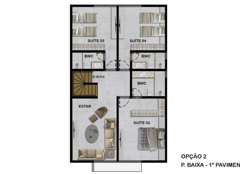 Imagine-se vivendo em uma das 10 casas exclusivas, onde cada detalhe é meticulosamente projetado para harmonizar com o ambiente natural ao seu redor. Desde jardins privativos que variam de 71,00 m² a 133,00 m² até espaços internos que se adaptam às suas necessidades, estas residências são um verdadeiro oásis de conforto e modernidade.